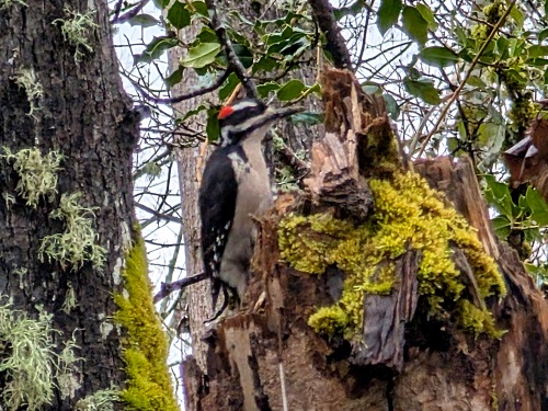 - Four woodpecker day - Downies, at least 1 Hairy, 2 Pileateds (very noisy and obvious), and a horde of extremely vocal Northern Flickers