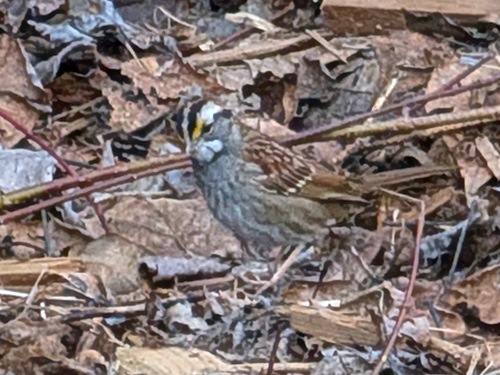 - White-throated Sparrow - FOUR TOGETHER under the old weeping willow at the Rowing Club. High Count for us at the park!